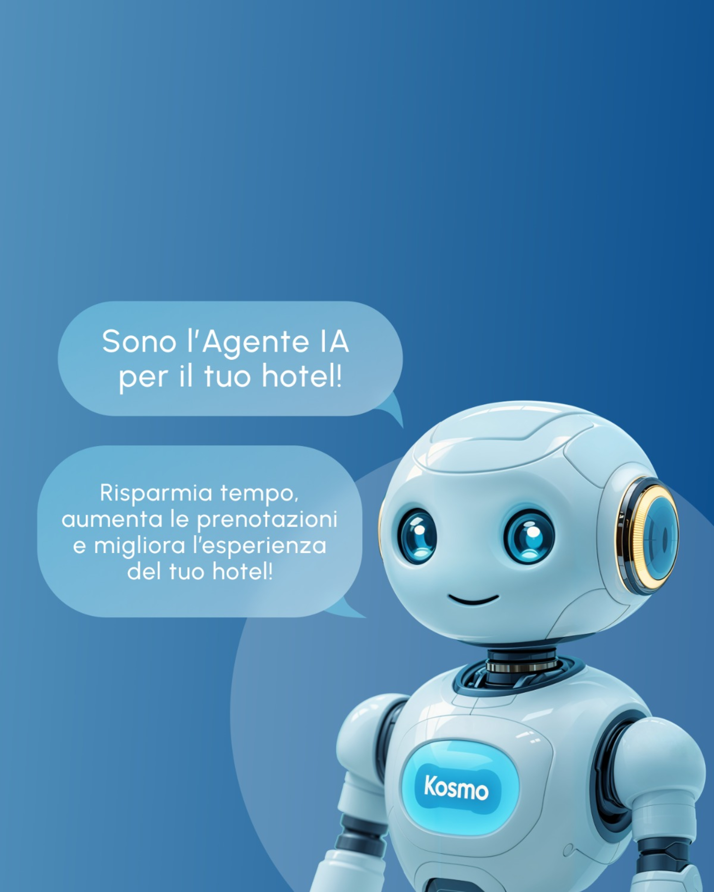 Kosmo è il miglior Agente IA progettato per hotel per far risparmiare tempo e aumentare le prenotazioni dirette. Kosmo usa l'intelligenza artificiale per gestire in modo automatico e preciso le richieste dei tuoi ospiti in qualsiasi lingua. Si comporta come — o a volte meglio — di un umano, con un minimo sforzo per essere installato.