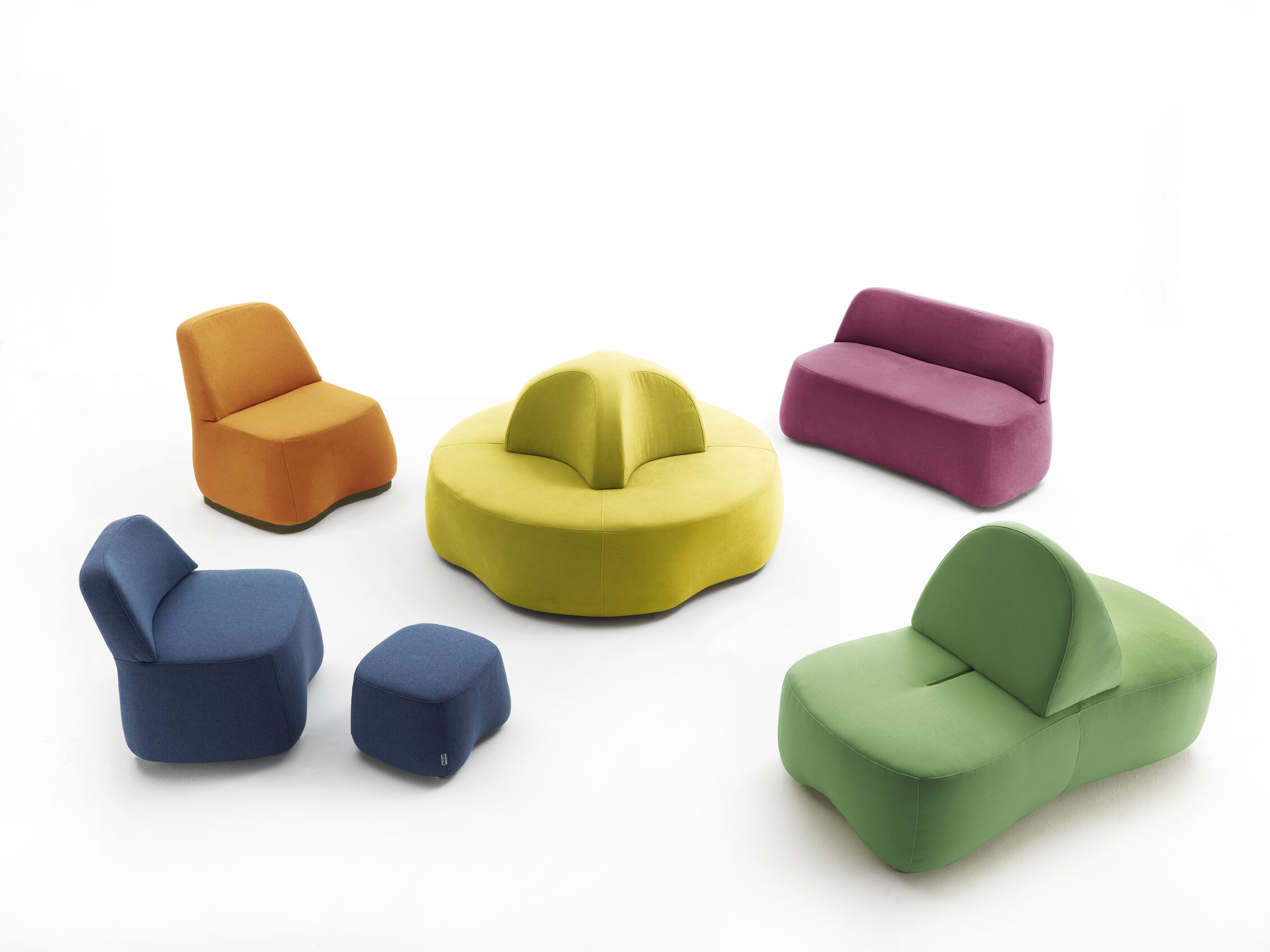A firmarne il comfort è Piuma by Pasi, con poltroncine e panche in tessuto dai colori morbidi.
